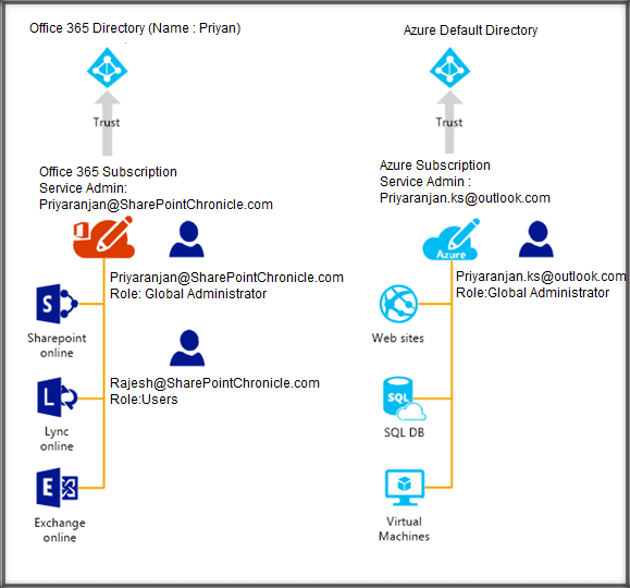 We will bring over the Office 365 Directory to Azure, so that [email protected], can manage both Azure and Office 365 Directory. The end result is mentioned below.