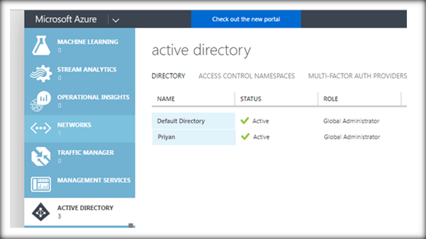 Heading over to the Active Directory tab, we can see Office 365 Directory, which is present in the listing along with the default directory.