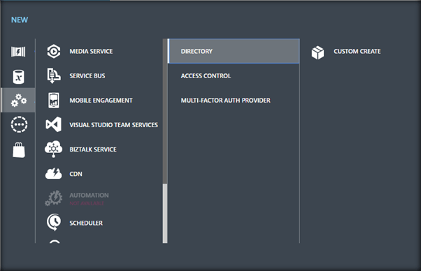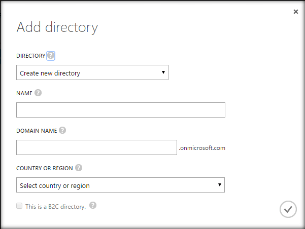 This will open up the Window, where we can create a new Azure Active Directory with the default option of Creating a new directory.