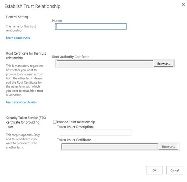 This is optional to connect a Trust Certificate, if you want to provide trust to another Farm other than your Farm certificate to provide a trust relationship.