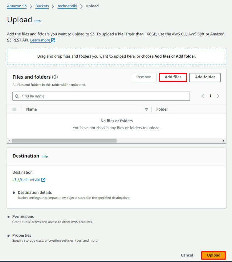 Step 1. Go to the S3, select the Buckets, and then select the bucket to which you want to upload the files.
