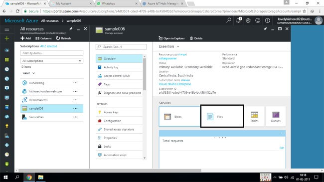 This article is all about using the file share facility in the storage accounts of Microsoft Azure. Here, you will learn to upload the files into the file share in the storage account as well as the concept of mapping a network drive in your local machine. This mapped network drive in your local machine will help you to directly upload the files into the portal rather than using the command shell commands or Azure portal. Let us see in detail. Prior to it, you need to create a new storage account in Azure portal. If you know to create it, then create it and follow the steps and if you don’t know how to create one follow this link and learn it. Once you finish creating an Azure storage account, open up all the resources panes and click on the name of the storage account, which you have created. This will direct you into the Window of configuring your storage account.