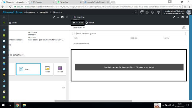 Basically, a file share is an online storage space, where you can store data. Also, you can add it as a network drive in your machine, which we are going to see in the further steps. As of now, remember that this is a Cloud storage drive.