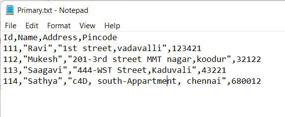 - Primary File (which has student Id, Name, and Address) is considered as main table.