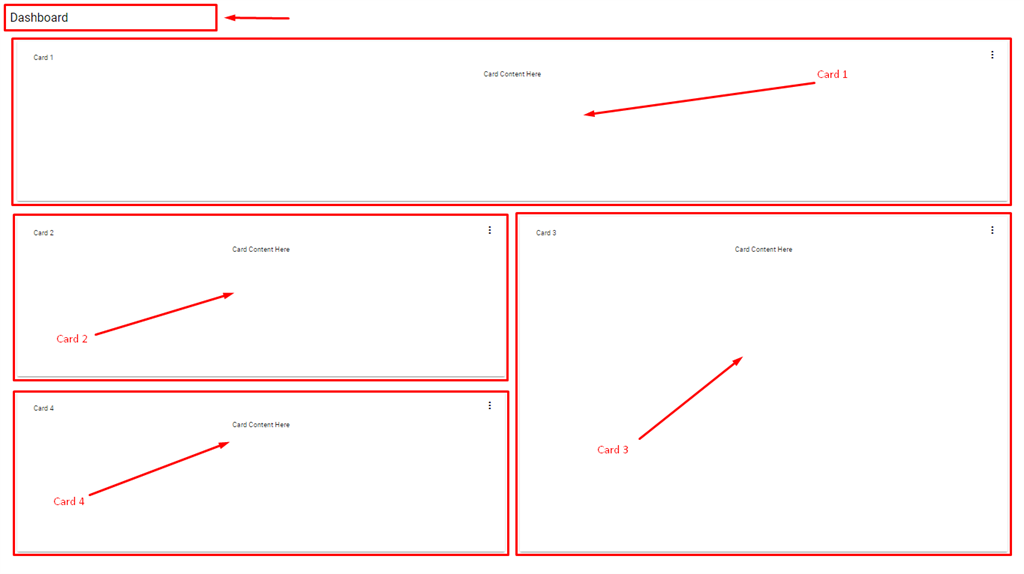 TypeScript file contains an array of cards to be generated while creating the dashboard. For that we can specify how many rows and columns will be occupied to generate card component.