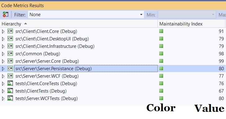 - The higher the value of the Maintainability index, the more maintainable the code is.