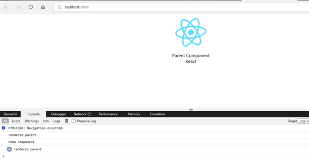 As you can see in the console, the memo component is rendered once and after that, it is not rendered until any changes occur in props or state.