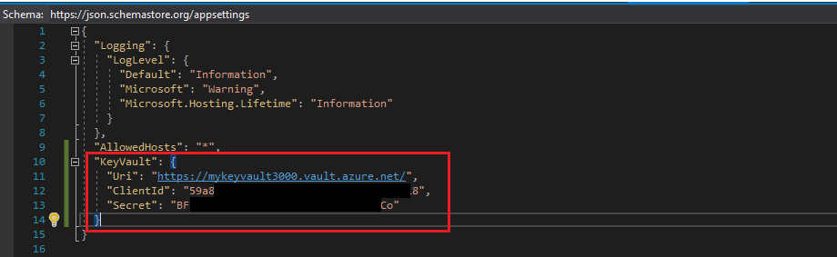 I modified appsettings.json and added Azure Key Vault configuration values into the service.