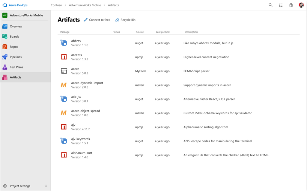 Create Artifacts and share NuGet, npn, Maven package from the public and private sources and manage continuous integration/continuous delivery (CI/CD) pipelines with just a button click.