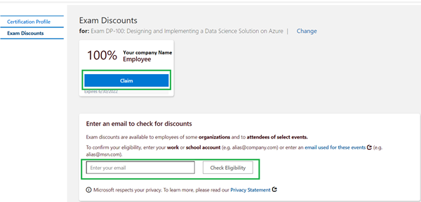 Microsoft certification cost is around $99 USD. The Microsoft ESI program offers a 100% discount voucher to apply at checkout on the Pearson Vue site for the exam. You can follow the below steps to schedule an exam with a free voucher code.