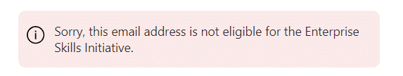 If your company is not eligible for enterprise skill initiative, you will get the following error message.