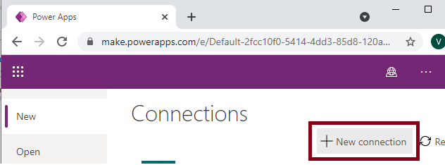 Open the URL https://powerapps.microsoft.com/en-us/ in the browser for Power apps,