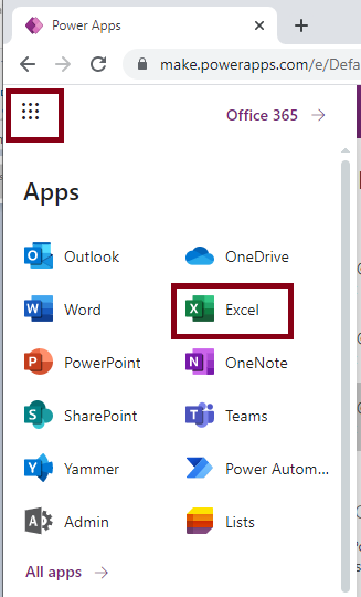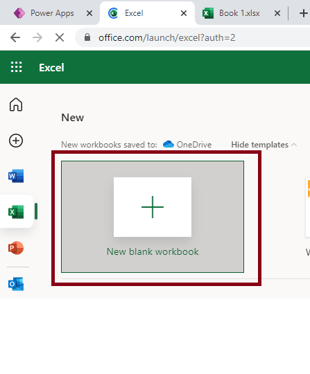 Click the App Launcher and select Excel, click on New Blank Workbook.