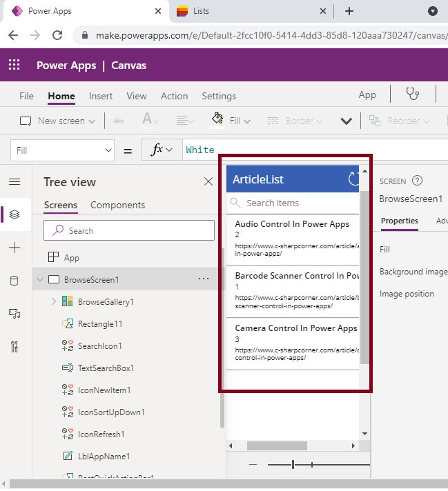 Now you have successfully tested List with SharePoint in the Power Apps Studio environment.
