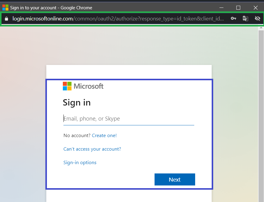 Fig1 : Microsoft Teams - "Sign in" dialog
