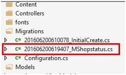Therefore, we can see migration folder and another file is created with a name Mshopstatus.cs.
