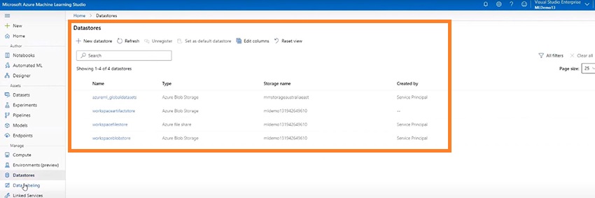 Different global datasets as well as our private data sets can be stored in the datastores.