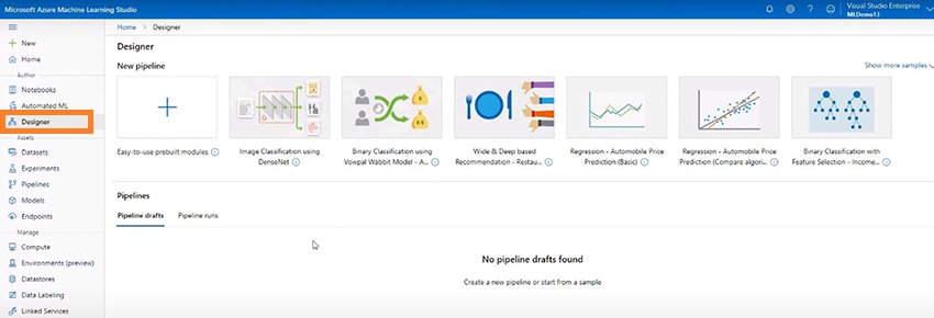 The Designer uses graphical user interface to create and validate machine learning models.
