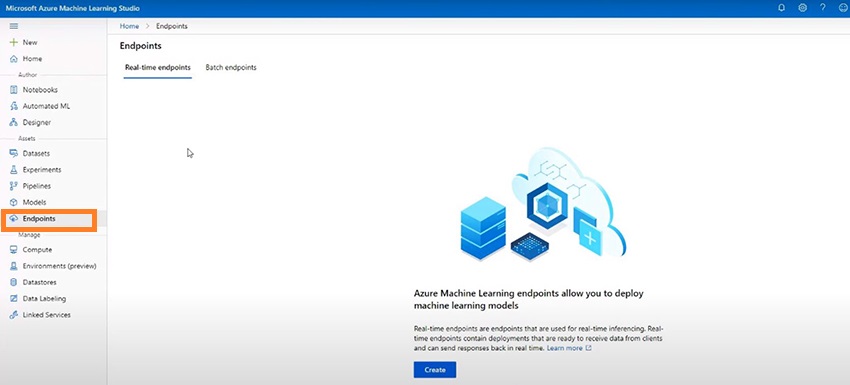 The Machine learning endpoints that our application will be connecting to can be reached out from this section.