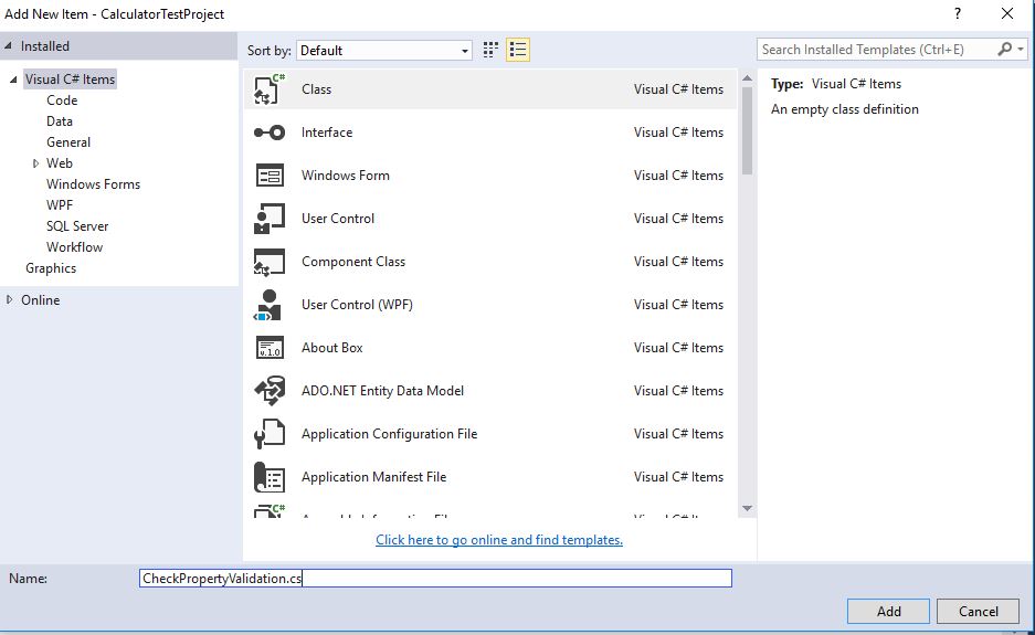 Link. So here, we will learn how to check these property validations using Nunit Unit Test. Create a simple project and add the Nunit reference in this.