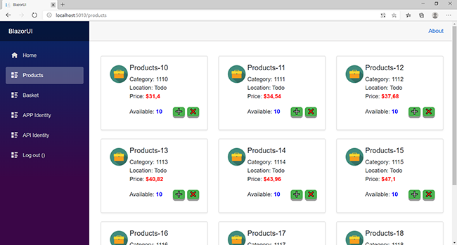 ProductsController.cs loads the products from the store service and forward them to the BlazorUI as follows,