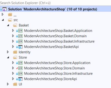 StoreApi and the BasketApi assemblies are mixing the Infrastructure and the WebAPI and the Application Logic. In the next version, I will separate them according to the clean architecture principles.