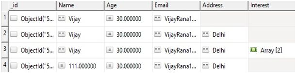 - Name:"Vijay",Age:30,Email:"[email protected]",Address:"Delhi",Interest:["Cricket","Music"]