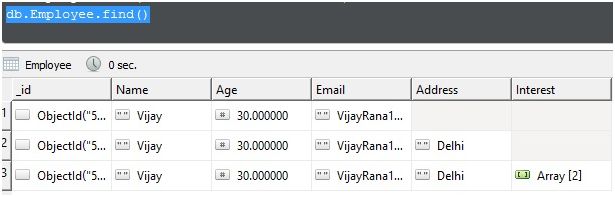 Let me insert one more document in Employee Collection, as shown below: