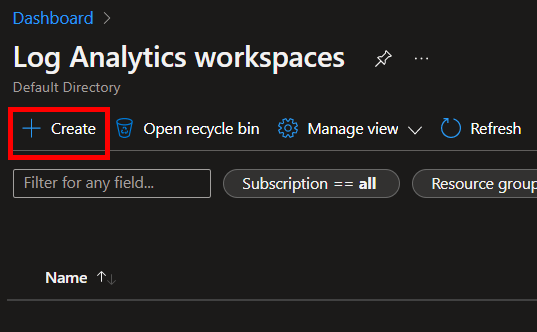 To begin with, create a log analytic workspace for now, we will come to it later.
