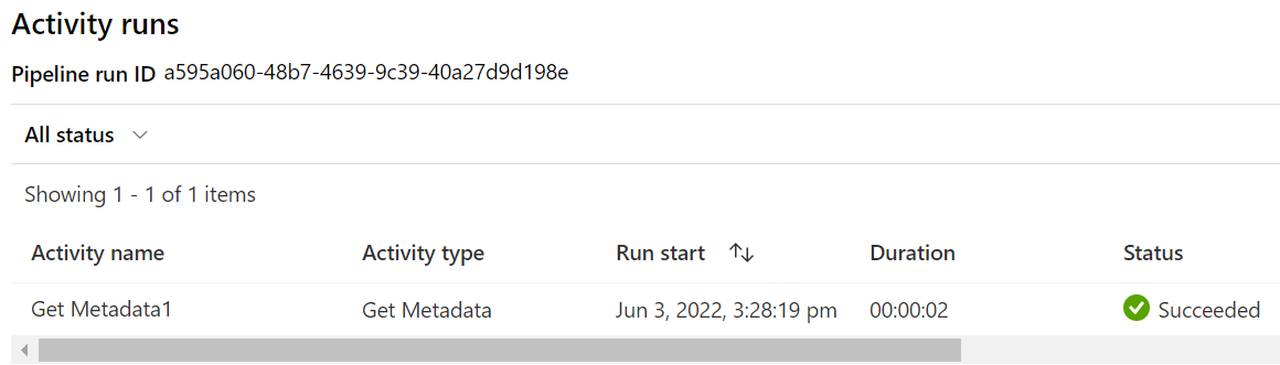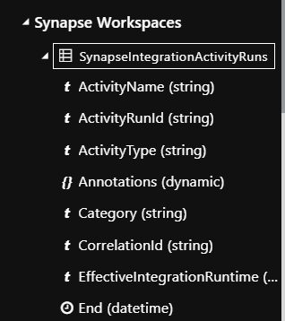 Now go back to the log analytics logs tab where you can see the table created. The table holds key information like activity name, runID, type, category, etc.