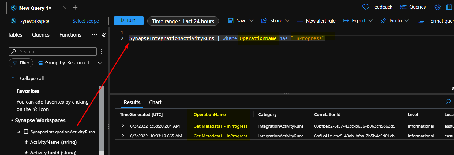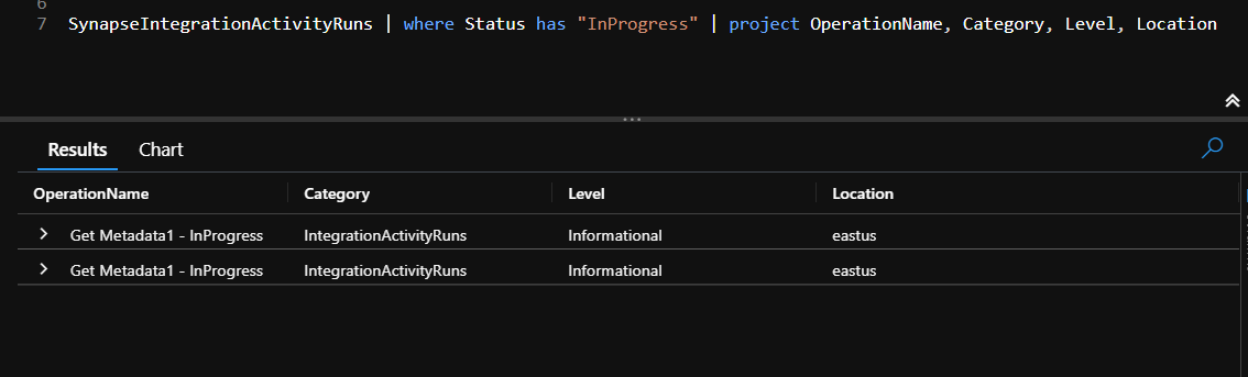 I have queried to filter only ‘InProgress’ from the OperationName column. You can query based on your need, I just wanted to show you a demo where all the rows in the OperationName column contains the words ‘InProgress’ in it.