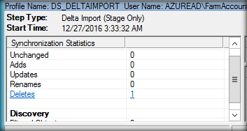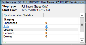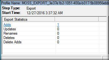 Whenever the User Profile Synchronization happens, it monitors the process and provides us with the number of User profile Adds/Deletes/Updates/Renames that has occurred as shown below: