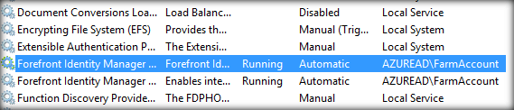Heading over to the Services.msc window, we can now see that both the Forefront Identity Manager Services are running.