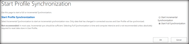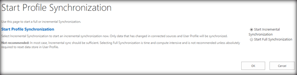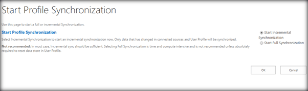 If the profile synchronization is happening for the first time, we can run a Full Synchronization else we can go with the incremental synchronization.