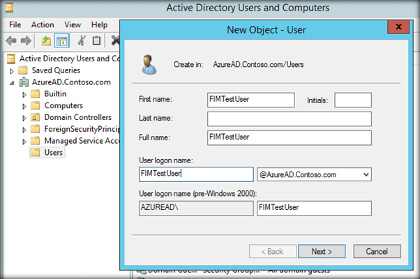 The active directory controller is in a different server other than the Synchronization Server. Once the user is created, we will run the Synchronization Service in the Synchronization Server.