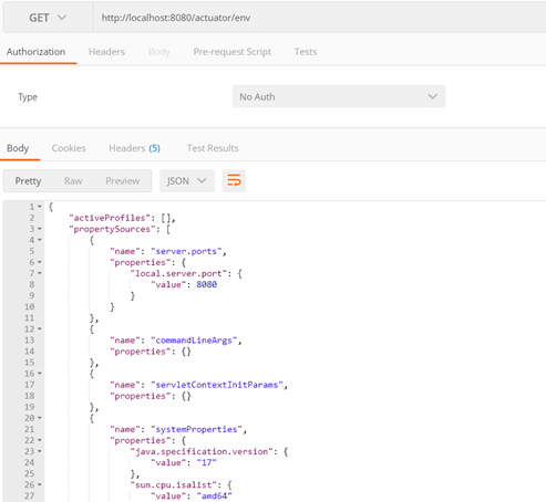 - With /env endpoint, we can better analyze the environmental details like a port on which the service is running, JVM version, system environment details.