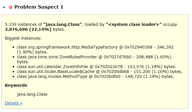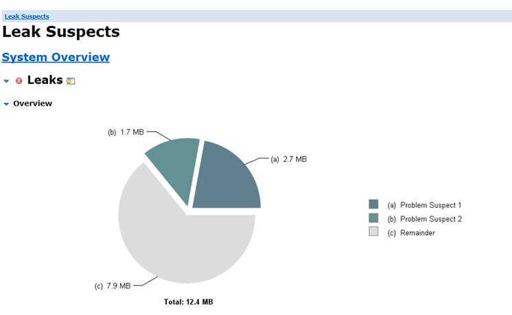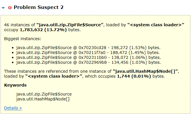 The heapdump file tries to provide all kinds of Leak suspects. Wonderful.