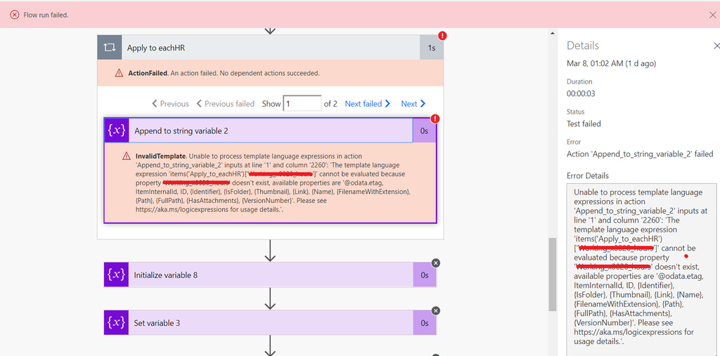 The template language expression 'items('Apply_to_each')['Column_Name']' cannot be evaluated because property 'Column_Name' doesn't exist, available properties are '@odata.etag, ItemInternalId, ID, {Identifier}, {IsFolder}, {Thumbnail}, {Link}, {Name}, {FilenameWithExtension}, {Path}, {FullPath}, {HasAttachments}, {VersionNumber}'.