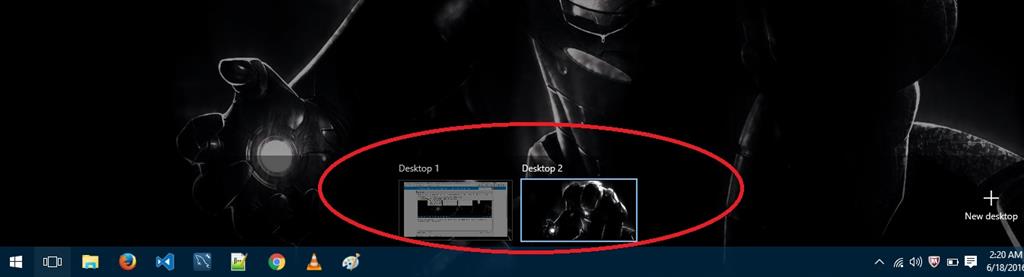 Please note the "+ New Desktop" option on the bottom right (marked in the figure above). Click on this and then there will be two different desktops just below all the tiles, as in the figure below,