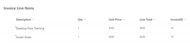 Select Form Control and add the following code on the “OnSucess ” event to store line items from the data table.