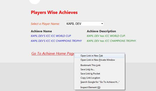 Click On Go To Players wise Achieves link it will go to Player Wise Achieve Page.