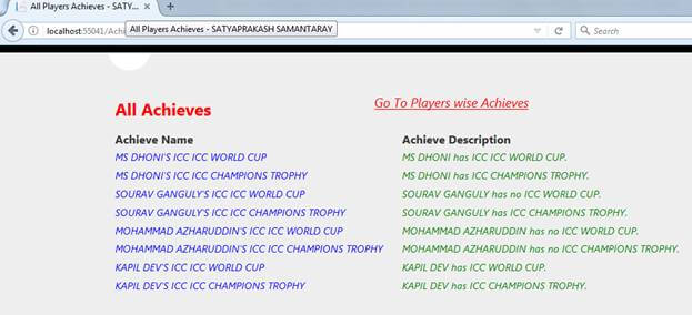 Now, playerwise achievements page showing Achievement Name and Achievement Description from DataRepository Class and Achieve Class file let the user for proper selection of select player name from dropdown list.