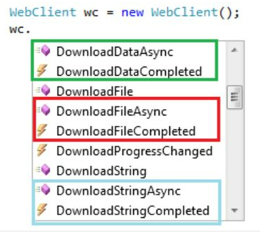 - Asynchronous Programming Model (APM) pattern (also called the IAsyncResult pattern).