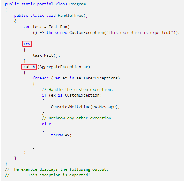see: Exception handling (Task Parallel Library) - .NET | Microsoft Learn