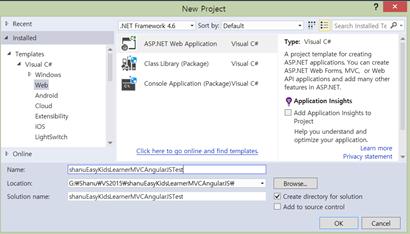 Right click the MyAngular Folder and click Add and New Item, Select Web, then select AngularJs Controller and give name to Controller. We have given my AngularJS Controller as “Controller.js”