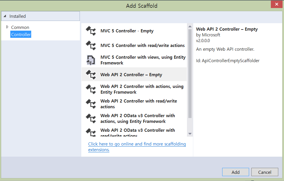 Here, we will add a Web API Controller to be used for our AngularJS.