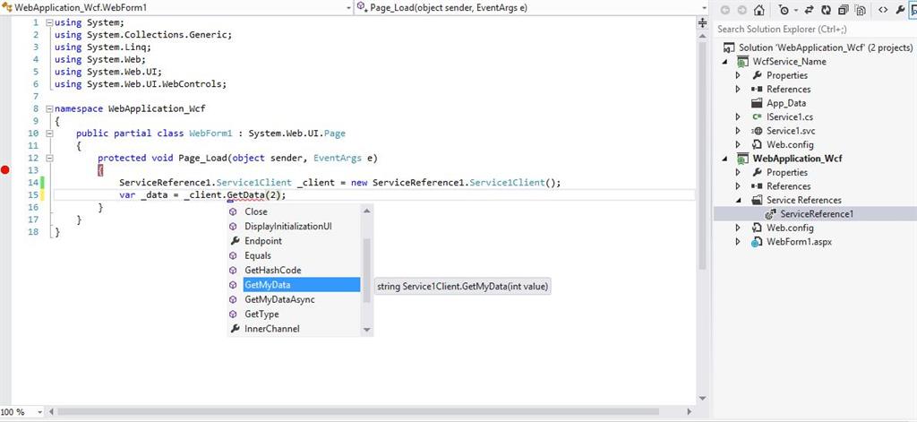 Next, we add its reference in a webproject and access the method GetData. So the code will look like the following: