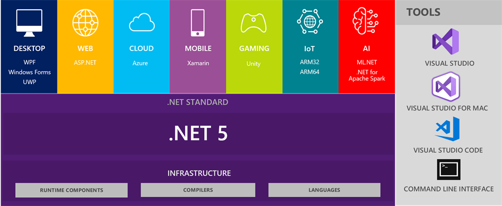 Recently, in the .NET Conf 2020, the .NET version 5.0 has been officially released. .NET 5 is committed to a big change in relation to the concept of development, since all kinds of applications, whether desktop, console, web, or mobile, will be made with a single cross-platform framework and with great power. This will allow you to have a unique .NET runtime that can be used anywhere and for any type of development or device.