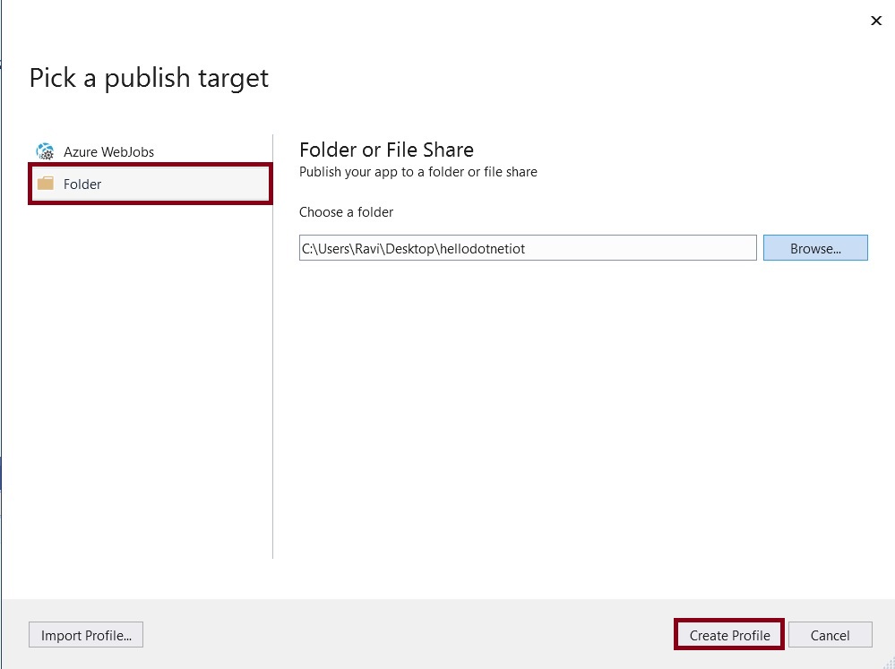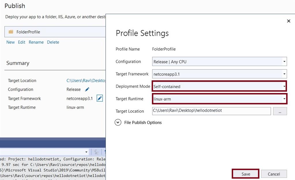 While creating a folder profile you must set the deployment models and target runtime. Click the save button, and finally, publish the code