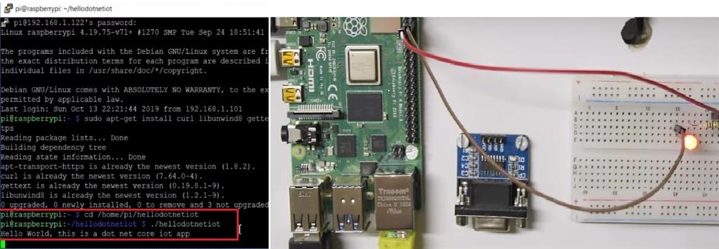 - cd /home/pi/hellodotnetiot